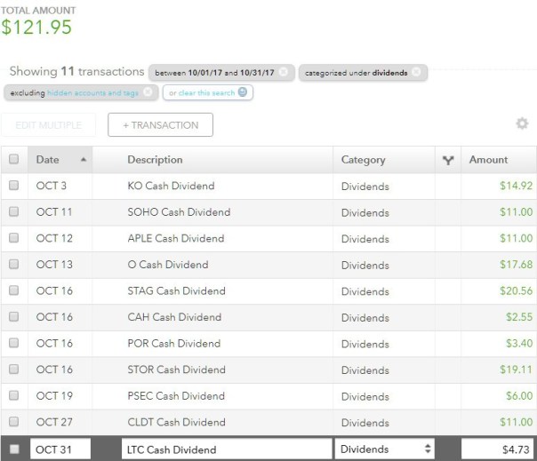 Dividend Income October 2017 October 31, 2017DividendsDividend Journal Share this: Click to share on X (Opens in new window) X Click to share on Facebook (Opens in new window) Facebook Like Loading... Related