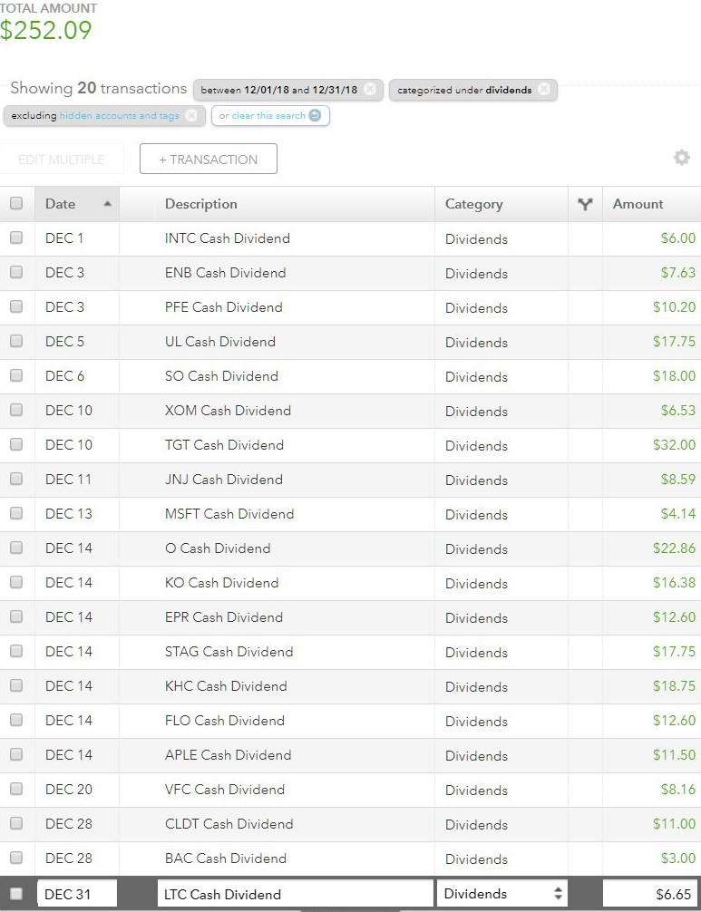 Dividend Income December 2018 Share this: Click to share on X (Opens in new window) X Click to share on Facebook (Opens in new window) Facebook Like Loading... Related