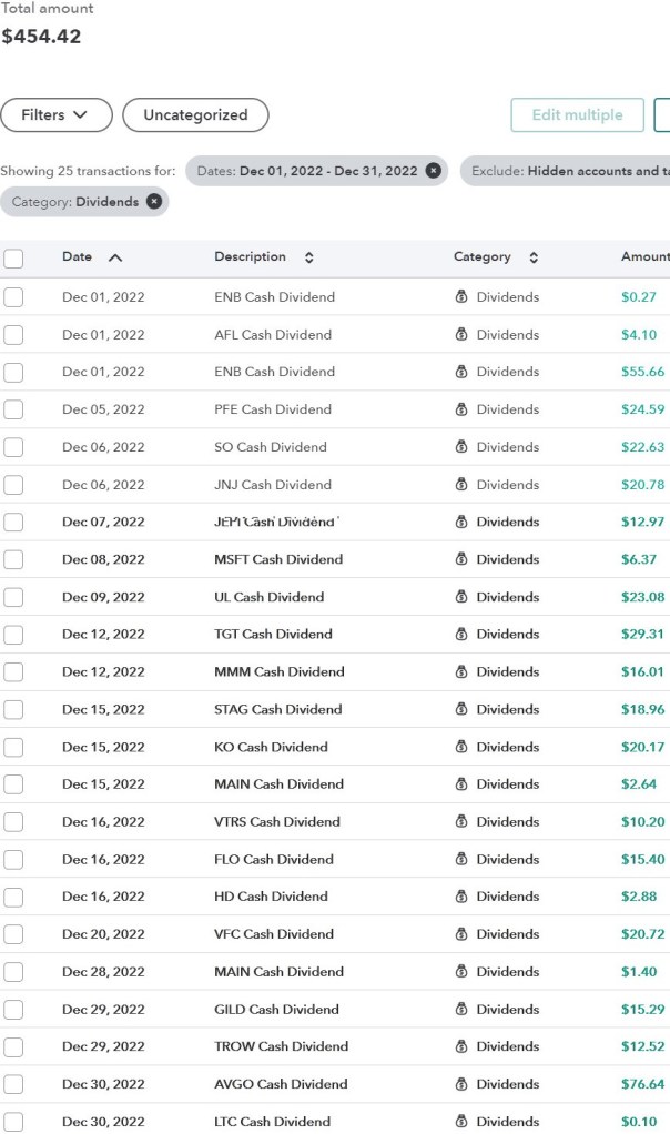 Dividend Income December 2022 December 31, 2022DividendsDividend Journal Forward 12 month estimated dividend income: $4,834 Share this: Click to share on X (Opens in new window) X Click to share on Facebook (Opens in new window) Facebook Like Loading... Related