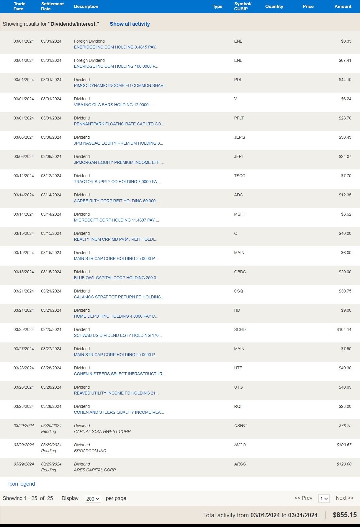 Dividend Income March 2024 March 31, 2024DividendsDividend Journal Projected Annual Dividend Income: $7,509Share this: Click to share on X (Opens in new window) X Click to share on Facebook (Opens in new window) Facebook Like Loading... Related